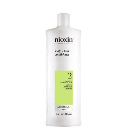 This is a lightweight conditioner that helps provide hair resilience, hydrates scalp and hair from root to tip. System Kit 2 is designed for natural, untreated hair with progressed thinning. Clinically and dermatologically tested. Nioxin System 2 Conditioner enhances scalp health by promoting a healthy environment for hair growth. Formulated with a powerful blend of wild mint oil and peppermint oil. Its lightweight, moisturizing formula contains ingredients that strengthen the hair against damage and breakage, while promoting a healthier scalp.